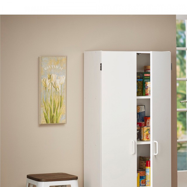 Kitchen Tall Utility Cabinets White Pantry Wall Storage Furniture