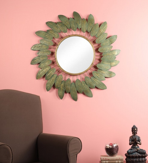 Buy Metal Round Wall Mirror In Green Color By Living Ideas Online