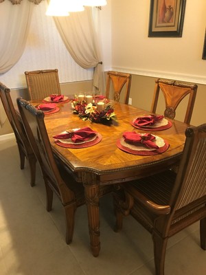 Traditional Dining Room Set With Table 6 Chairs And 2 Leafs Also