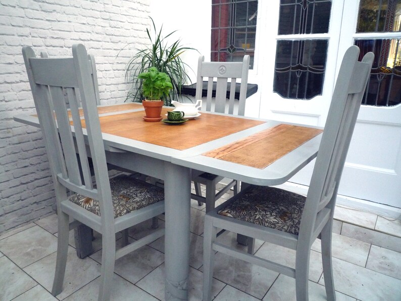 Vintage Oak Dining Table And 4 Chairs Grey Extending William Etsy