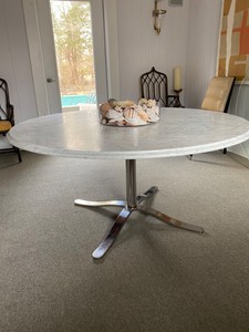 Nicos Zographos Stainless Steel Thick White Marble Dining Table