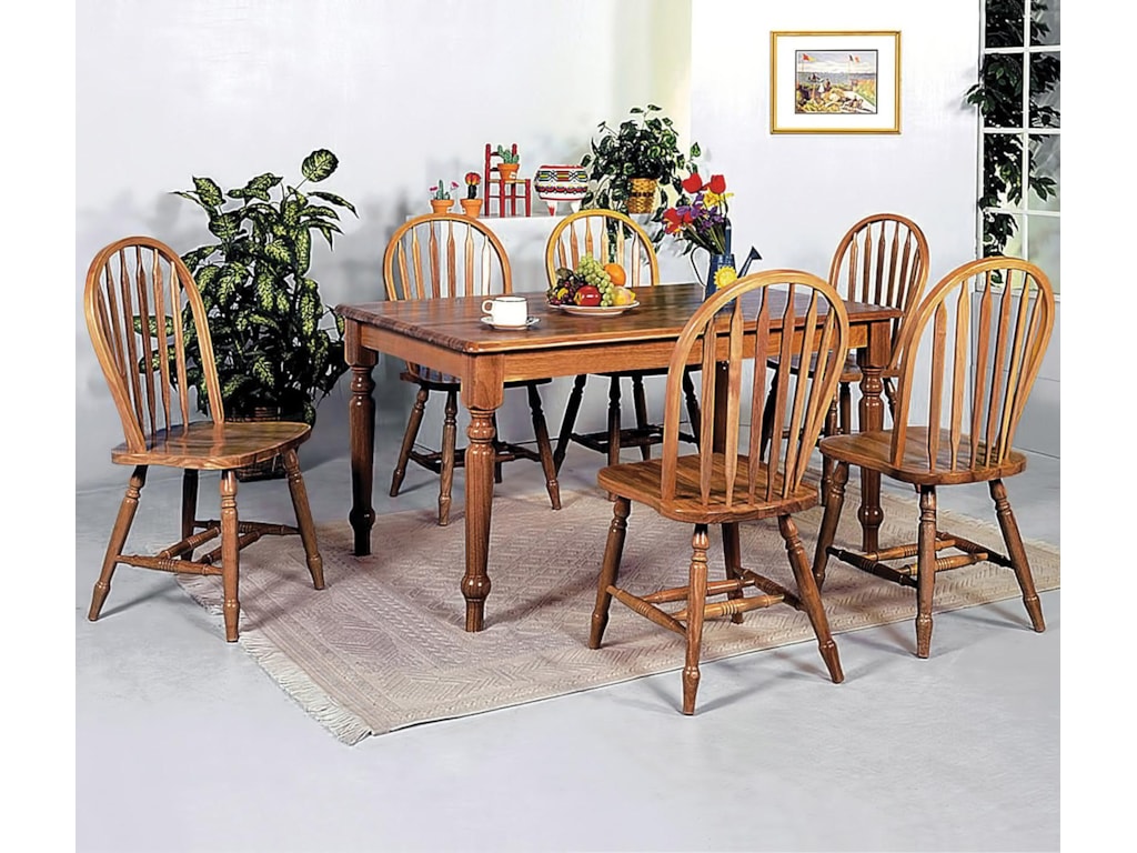 Dining Set 7 Piece Farmhouse Table 6 Windsor Chairs Kitchen