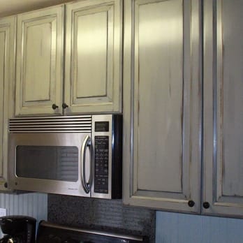 Kitchen Cabinets With Antique Paint Finish For Cottage Look Yelp