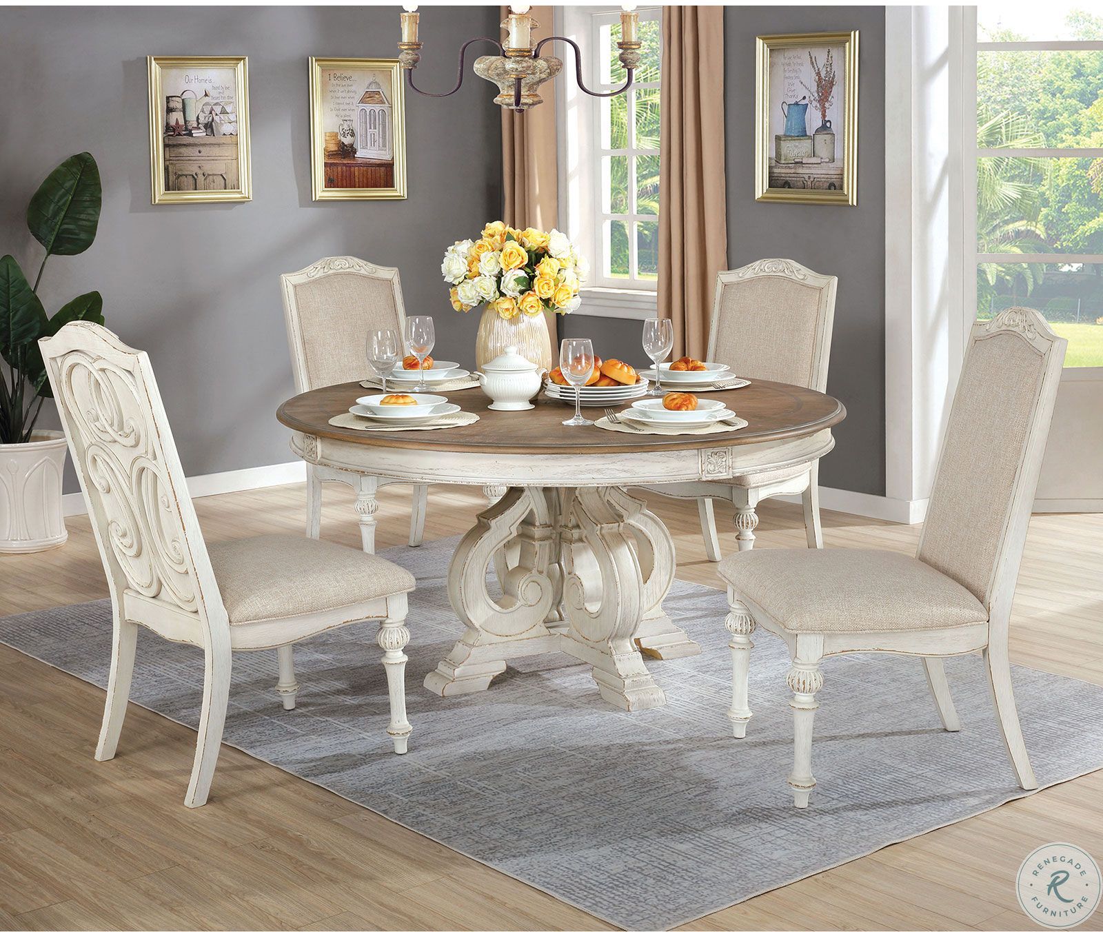 Arcadia Antique White Round Dining Room Set From Furniture Of