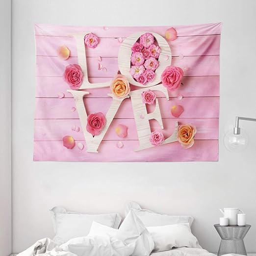Amazon Com Ambesonne Pale Pink Tapestry Wooden Love Letters On