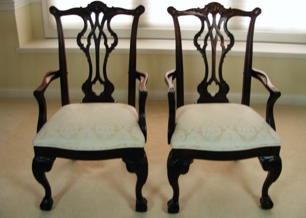 Pair Of Thomasville Mahogany Collection Dining Room Arm Chairs