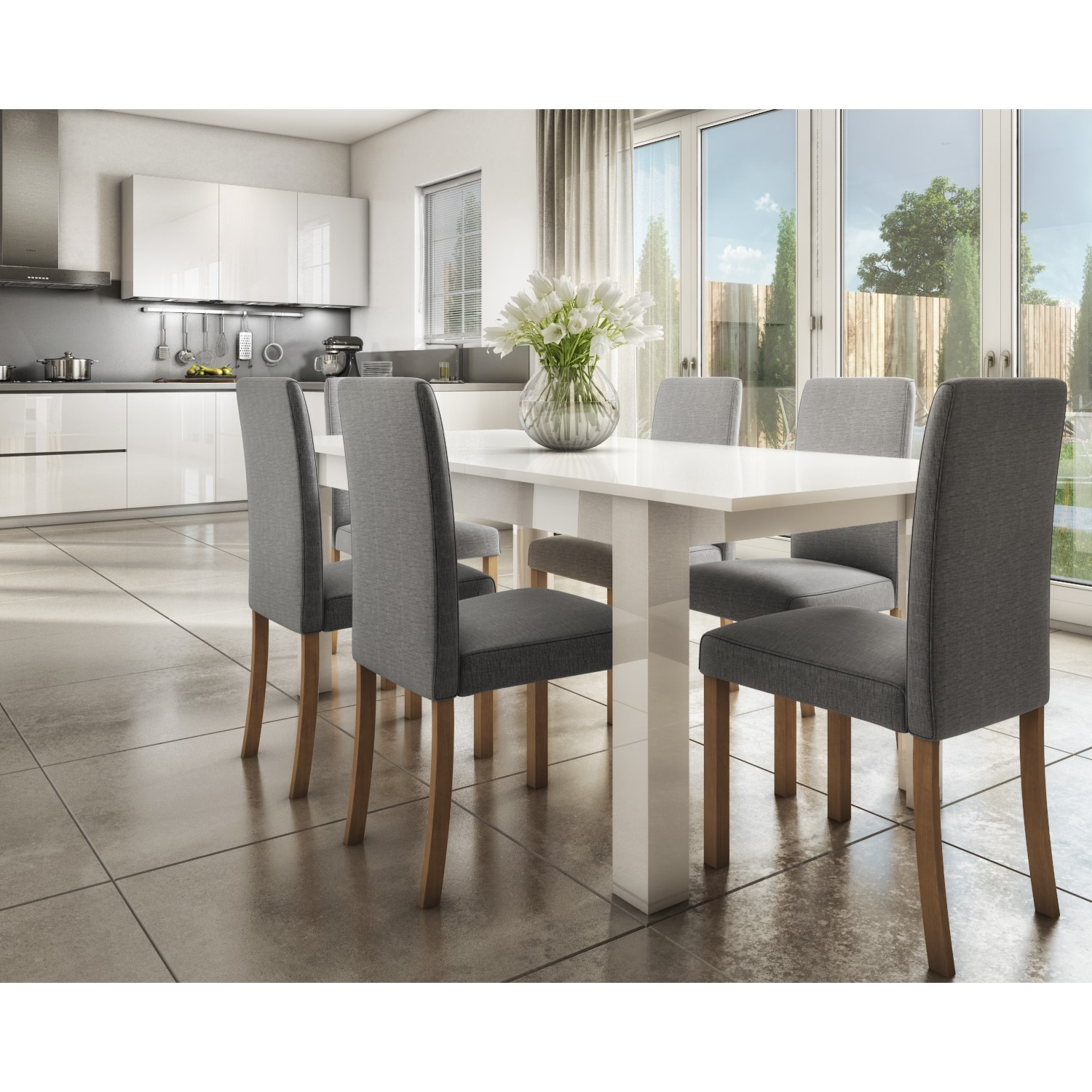 Extendable Dining Table In White High Gloss With 6 Grey Chairs
